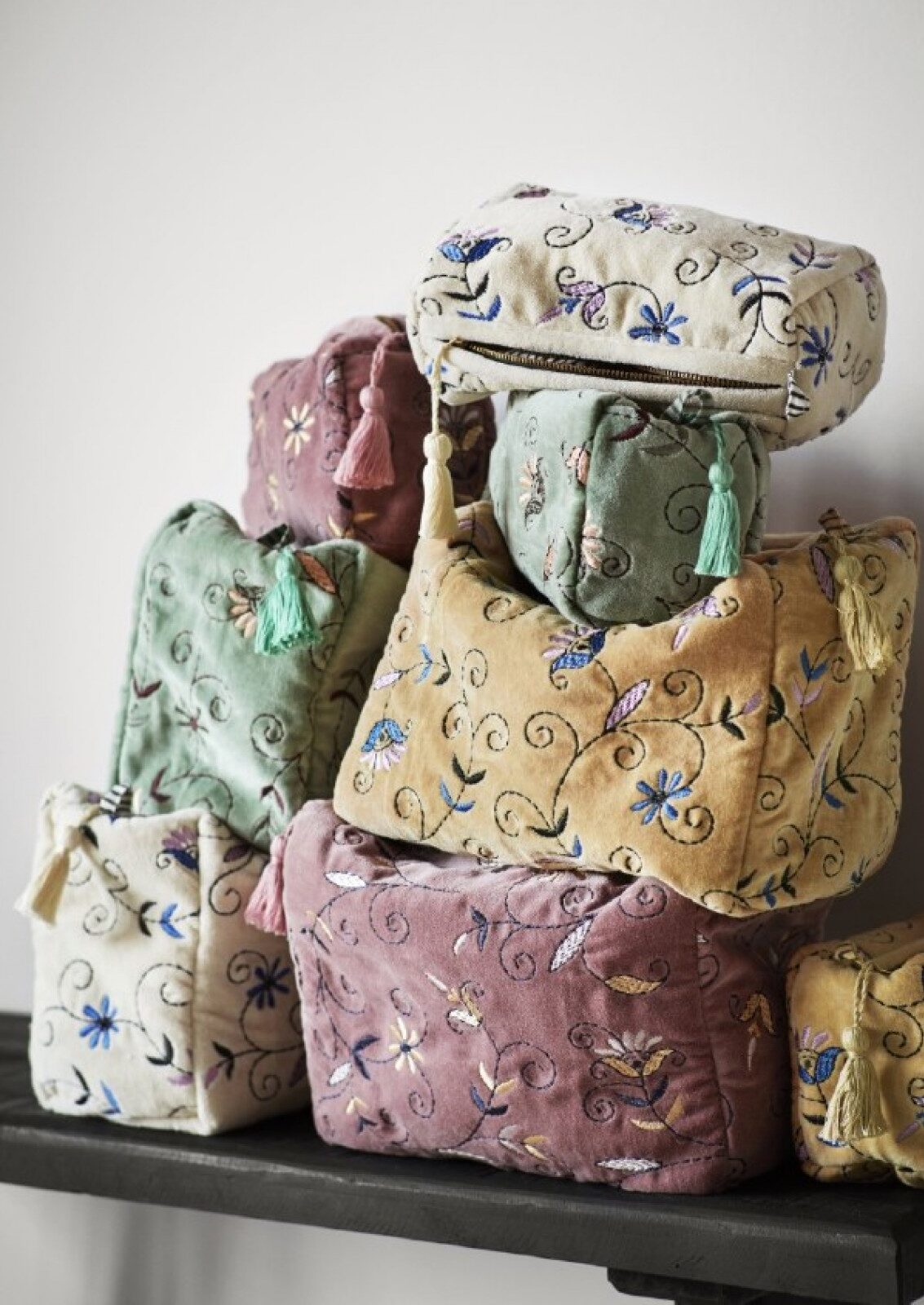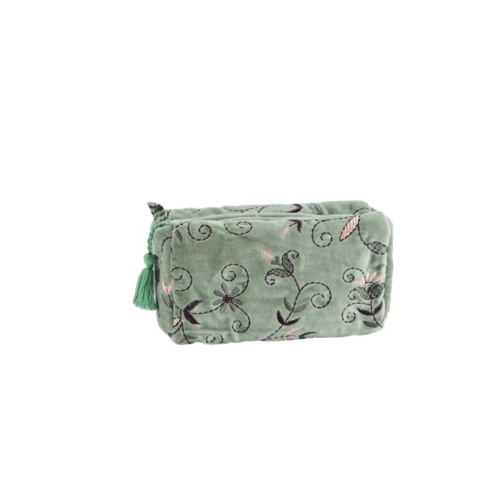 Ανακάλυψε την πολυτέλεια και την φινέτσα μέσα απο αυτό το μοναδικό βελούδινο νεσεσέρ ,χειροποίητα κεντημένο με περίτεχνη ακρίβεια .Κάθε λεπτομέρεια του κεντήματος είναι φτιαγμένη στο χέρι , αποπνέοντας την τέχνη και την αφοσίωση που απαιτούνται για ένα τόσο ξεχωριστό αξεσουάρ.Το πλούσιο βελούδινο ύφασμα του νεσεσέρ αγκαλιάζει το περιεχόμενο του,προσφέροντας προστασία με μια αίσθηση απαλότητας και πολυτέλειας . Η προσεγμένη κατασκευή του το καθιστά ιδανικό να μεταφέρετε καλλυντικά ,κοσμήματα ή μικροαντικείμενα με ασφάλεια και στύλ.